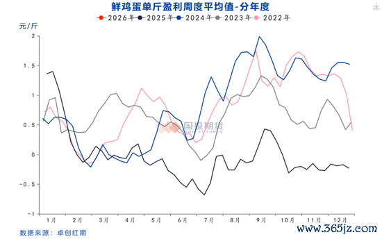 从行业利润角度来看,2025年蛋鸡养殖全年几乎都在亏损,仅年初及9月蛋价反弹期间实现小幅盈利,其余时间均在亏损。由于养殖亏损的持续,2025年下半年养殖端补栏情绪和上半年相比发生了逆转。