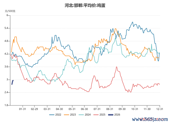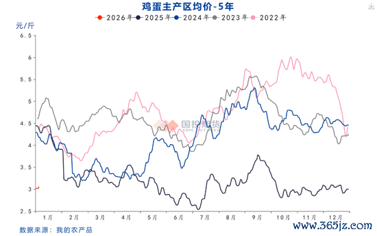 2025年四季度,鸡蛋现货价格持续低位震荡。不过自元旦开始,鸡蛋现货价格出现小幅走强迹象。以河北敦朴贸易为例,45斤鸡蛋报价从1月1日的121元上涨至1月8日131元。我们分析认为,1月份开始鸡蛋现货价格将逐步具备走强动能。