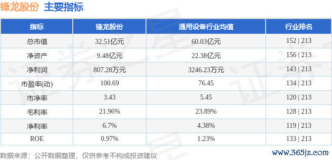 锋龙股份2025年一季报显示,公司主营收入1.21亿元,同比上升18.48%;归母净利润807.28万元,同比上升309.53%;扣非净利润673.66万元,同比上升318.61%;负债率16.31%,投资收益60.23万元,财务费用-137.59万元,毛利率21.96%。锋龙股份(002931)主营业务:从事园林机械零部件、汽车零部件和液压零部件的研发、生产和销售。